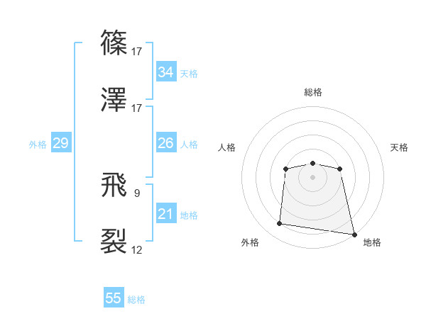 篠澤 飛裂さんを姓名の画数から五運を鑑定