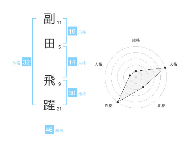 副田 飛躍さんを姓名の画数から五運を鑑定