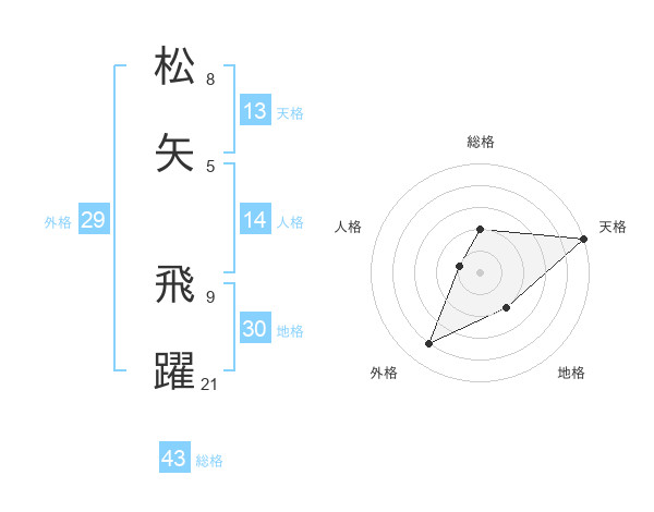松矢 飛躍さんを姓名の画数から五運を鑑定