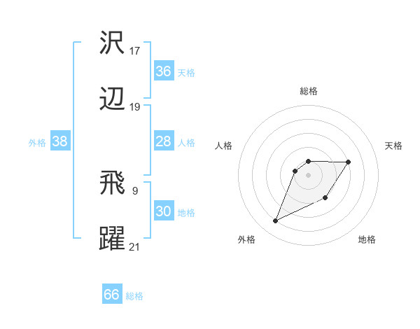 沢辺 飛躍さんを姓名の画数から五運を鑑定