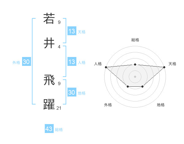 若井 飛躍さんを姓名の画数から五運を鑑定