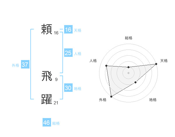 頼 飛躍さんを姓名の画数から五運を鑑定