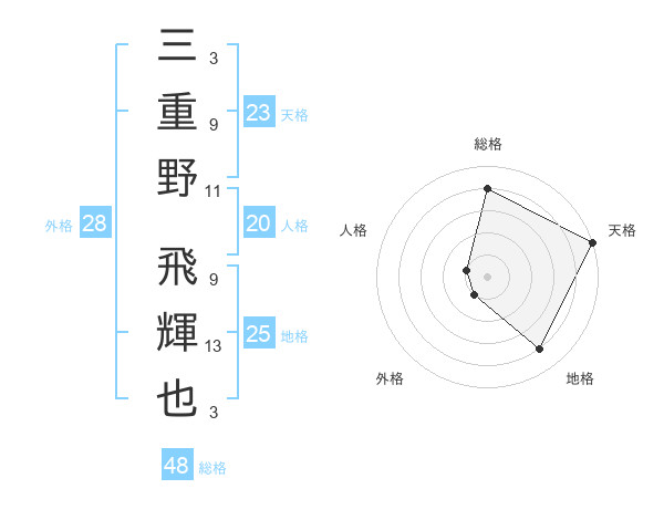 三重野 飛輝也さんを姓名の画数から五運を鑑定