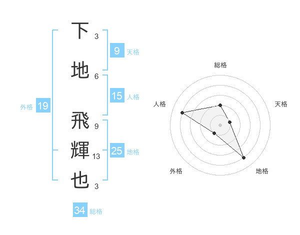 下地 飛輝也さんを姓名の画数から五運を鑑定
