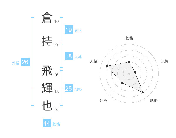 倉持 飛輝也さんを姓名の画数から五運を鑑定