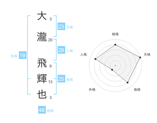 大瀧 飛輝也さんを姓名の画数から五運を鑑定