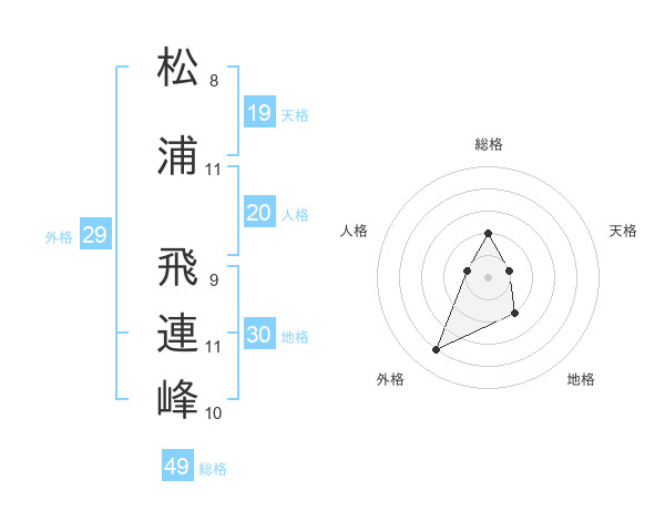 松浦 飛連峰さんを姓名の画数から五運を鑑定