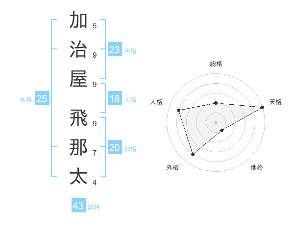 加治屋 飛那太さんを姓名の画数から五運を鑑定