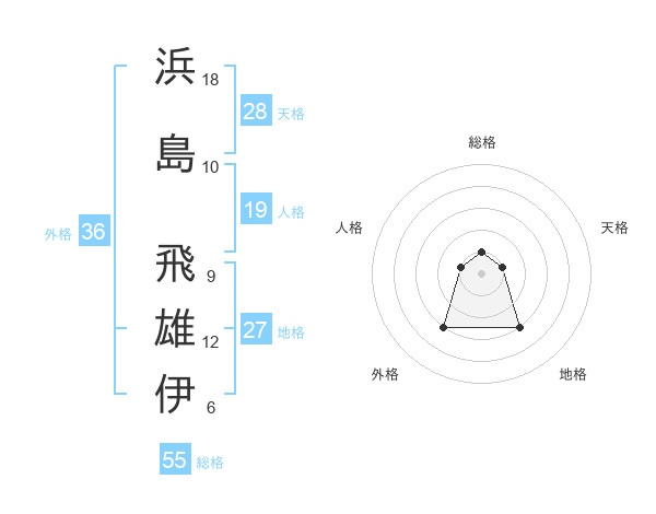 浜島 飛雄伊さんを姓名の画数から五運を鑑定