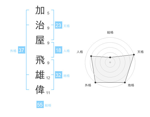 加治屋 飛雄偉さんを姓名の画数から五運を鑑定