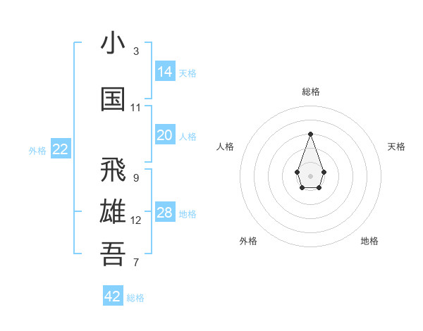 小国 飛雄吾さんの総格は42画の3点!