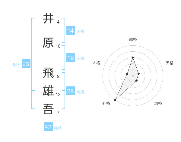 井原 飛雄吾さんを姓名の画数から五運を鑑定