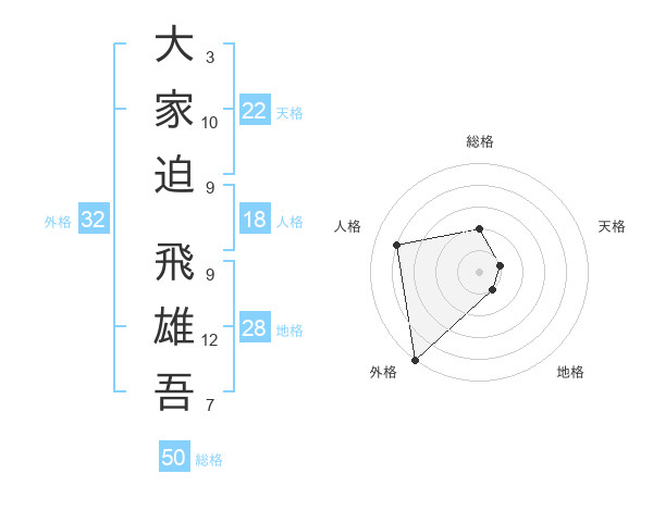 大家迫 飛雄吾さんを姓名の画数から五運を鑑定