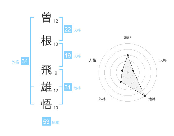 曽根 飛雄悟さんの総格は53画の3点!