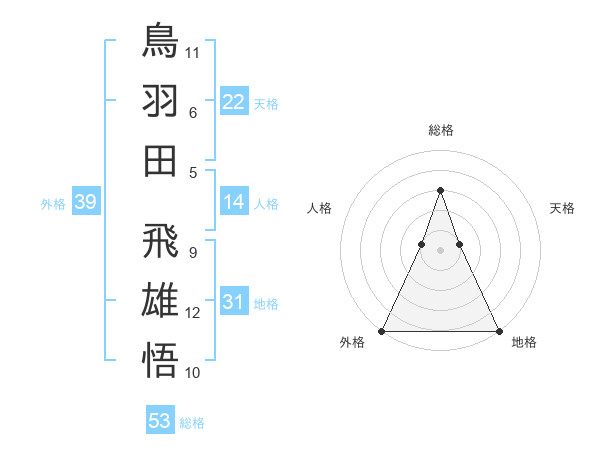 鳥羽田 飛雄悟さんの外格は39画の5点