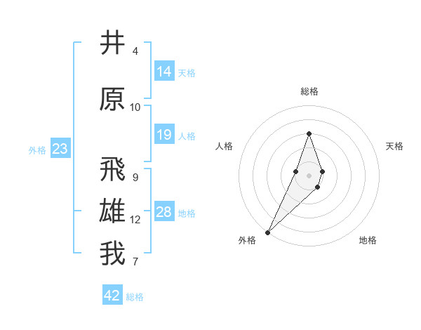 井原 飛雄我さんの外格は23画の5点!