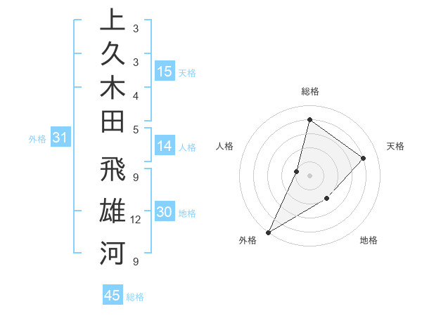 上久木田 飛雄河さんを姓名の画数から五運を鑑定