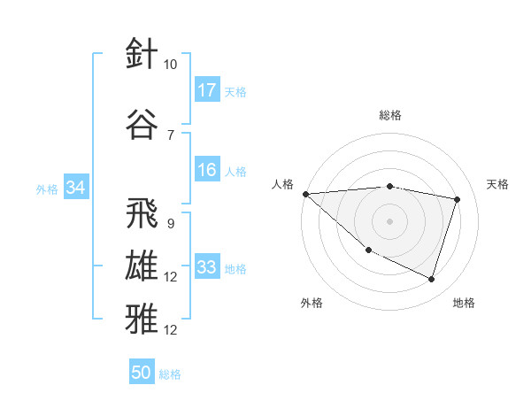 針谷 飛雄雅さんを姓名の画数から五運を鑑定