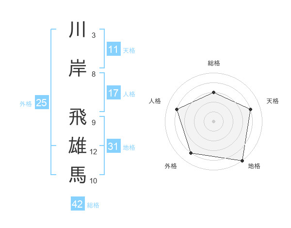 川岸 飛雄馬さんの天格は11画の4点!