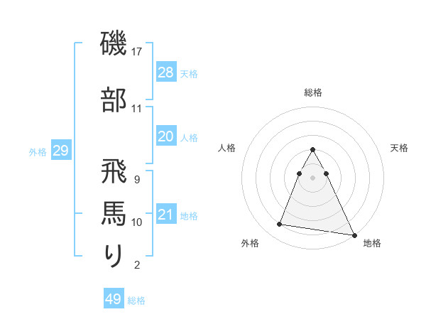 磯部 飛馬りさんを姓名の画数から五運を鑑定