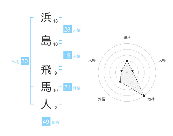 浜島 飛馬人さんを姓名の画数から五運を鑑定