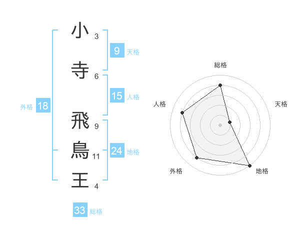 小寺 飛鳥王さんを姓名の画数から五運を鑑定
