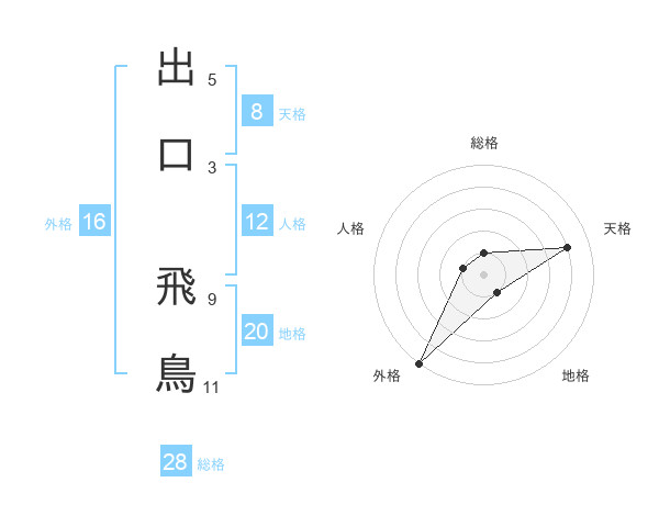 出口 飛鳥さんの総格は28画の1点!