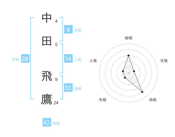 中田 飛鷹さんの総格は42画の3点