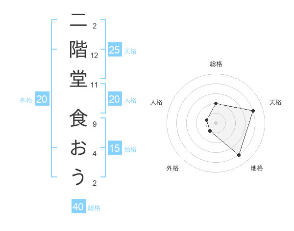二階堂 食おうさんを姓名の画数から五運を鑑定