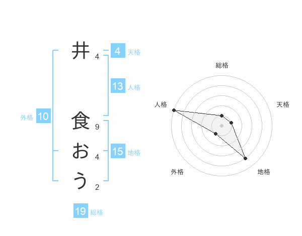 井 食おうさんの総格は19画の1点!