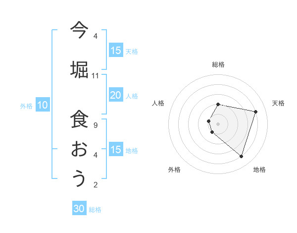 今堀 食おうさんを姓名の画数から五運を鑑定