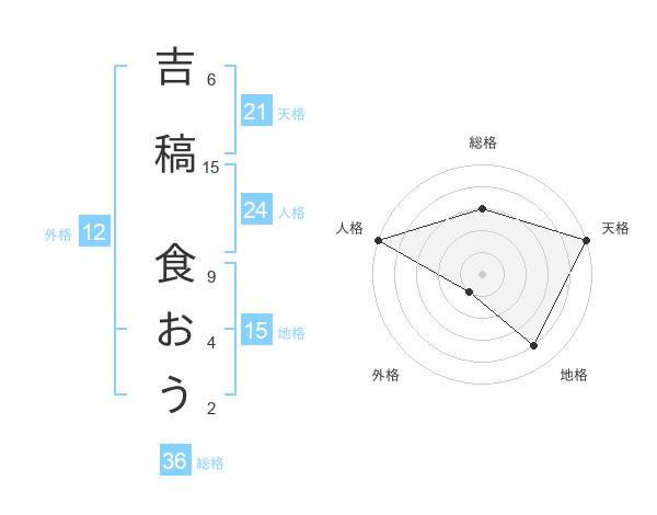 吉稿 食おうさんの天格は21画の5点!