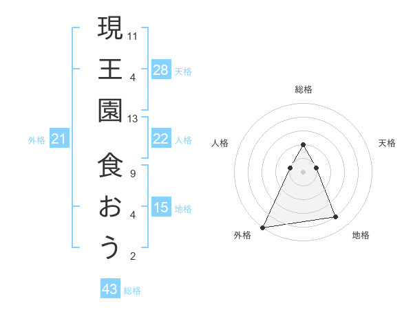 現王園 食おうさんの地格は15画の4点