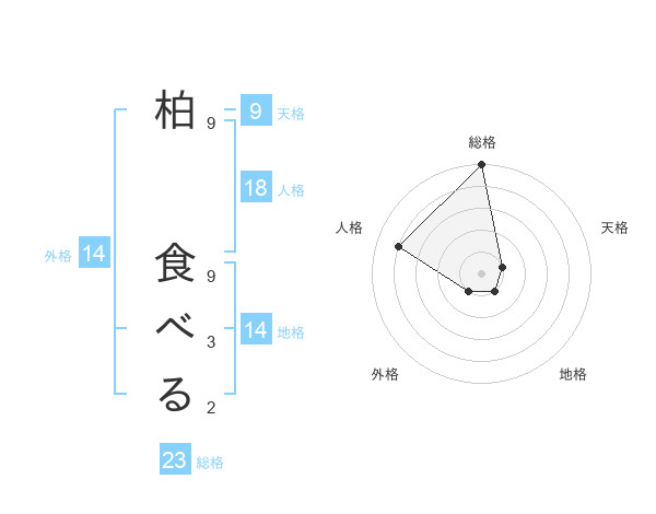 柏 食べるさんの総格は23画の5点!