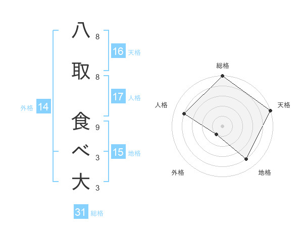 八取 食べ大さんを姓名の画数から五運を鑑定