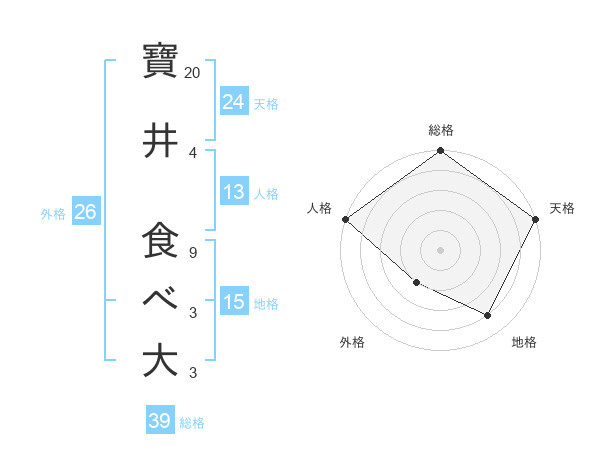 寶井 食べ大さんの天格は24画の5点!