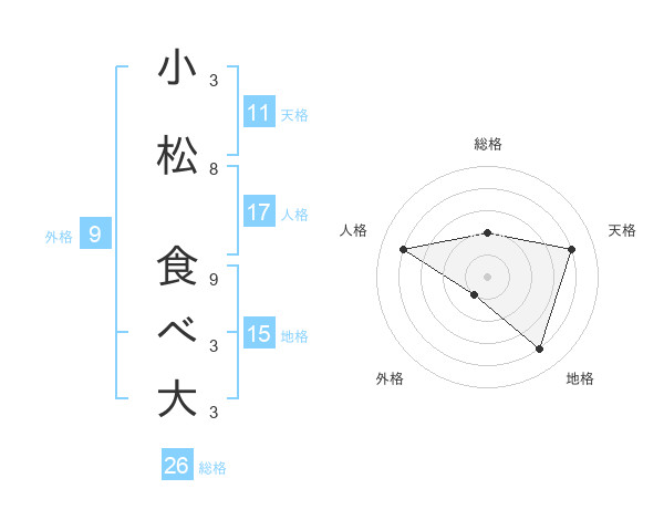 小松 食べ大さんを姓名の画数から五運を鑑定