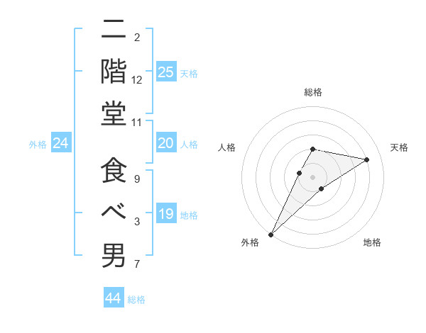 二階堂 食べ男さんを姓名の画数から五運を鑑定