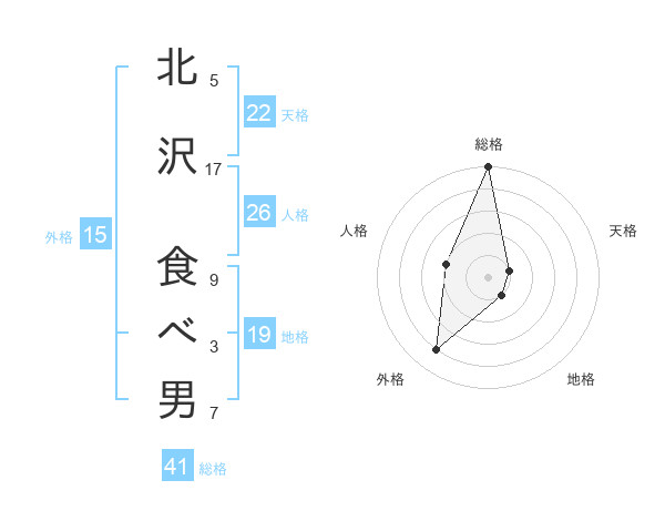 北沢 食べ男さんを姓名の画数から五運を鑑定