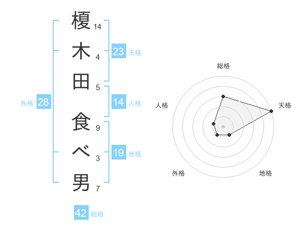 榎木田 食べ男さんの総格は42画の3点!