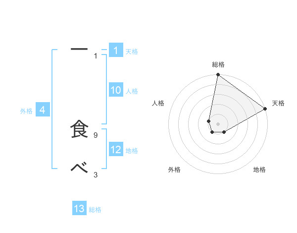 一 食べさんの総格は13画の5点!