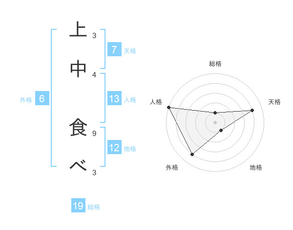 上中 食べさんの総格は19画の1点!