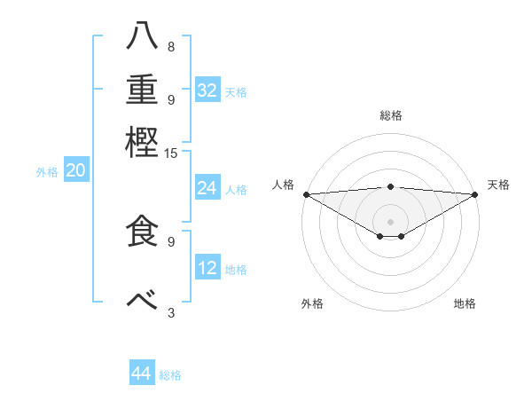 八重樫 食べさんを姓名の画数から五運を鑑定