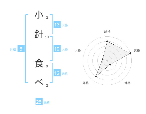 小針 食べさんの総格は25画の4点!