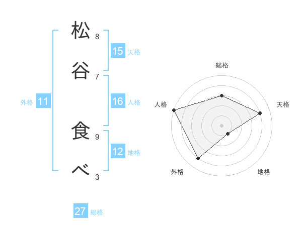 松谷 食べさんの総格は27画の3点!
