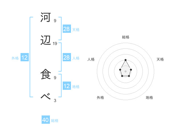 河辺 食べさんの総格は40画の2点!