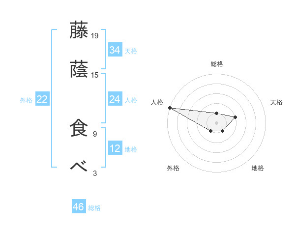 藤蔭 食べさんを姓名の画数から五運を鑑定