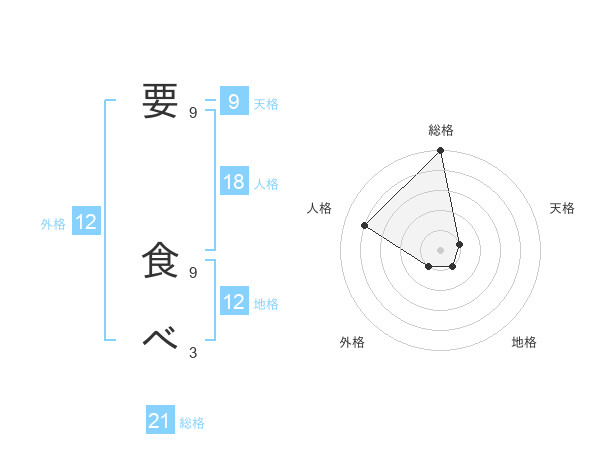 要 食べさんの総格は21画の5点!
