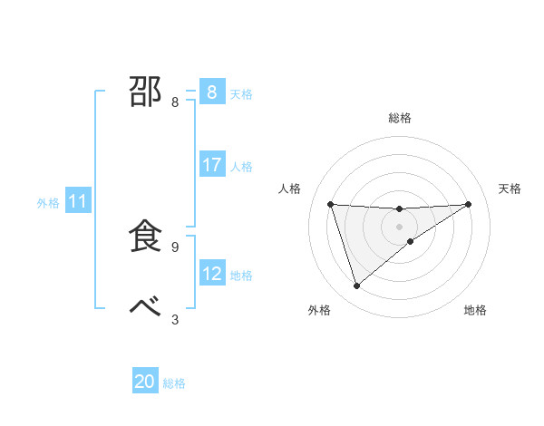 邵 食べさんの総格は20画の1点!