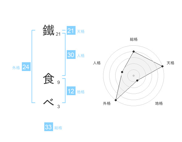 鐵 食べさんの総格は33画の4点!